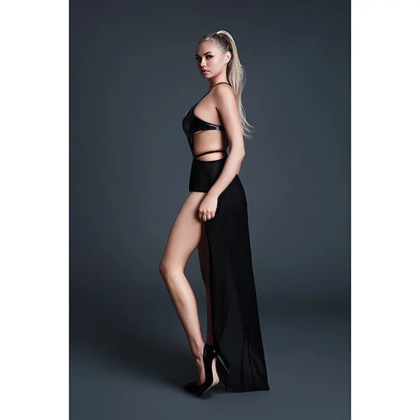 2pc. Layered mesh and contrast knit underwire cup chemise with overlapping front clasp mesh chest panel and matching thong panty. Hook and Eye Closure. Fabric Content: Shell: 90% Polyester 10% Spandex; Thong: 95% Polyester 5%...