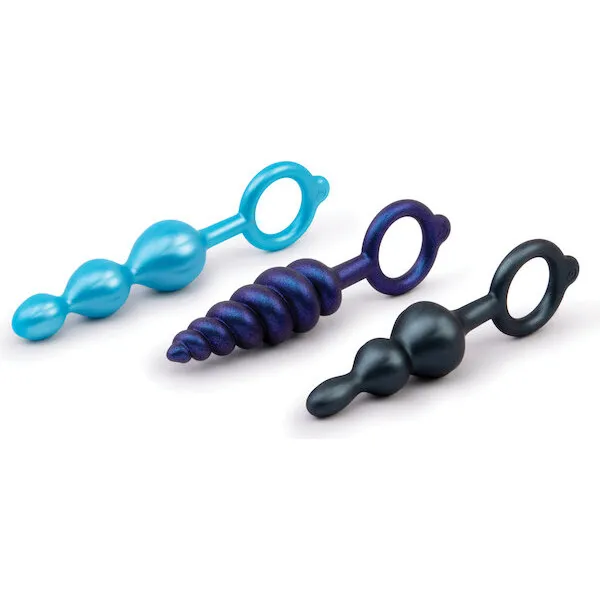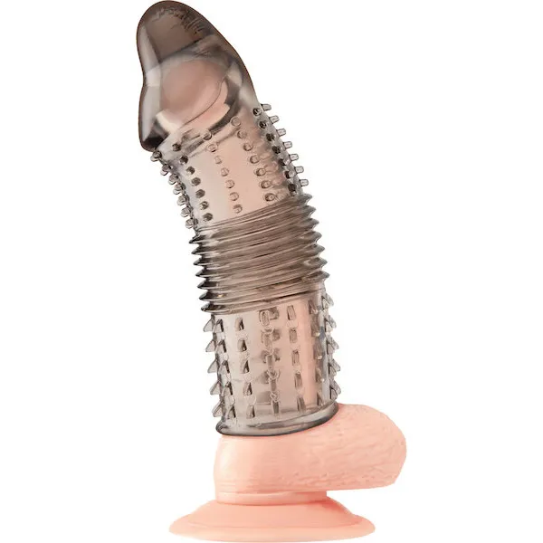 The Nines Vibrating Sextenders 3 Pack: Nubbed, Contoured and Ribbed from Icon Brands. These cool looking extenders come in three unique styles, and each is a generous 5.5 inches long. In a sexy smokey gray, they swirl, nub, rib...