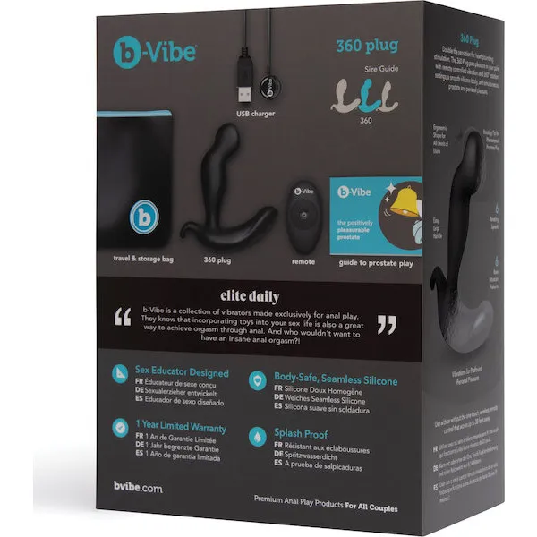Double the sensation for heart pounding stimulation. The 360 plug puts pleasure in your palm with remote controlled vibration and 360° rotation settings, a smooth silicone body, and simultaneous prostate and perianal pleasure.