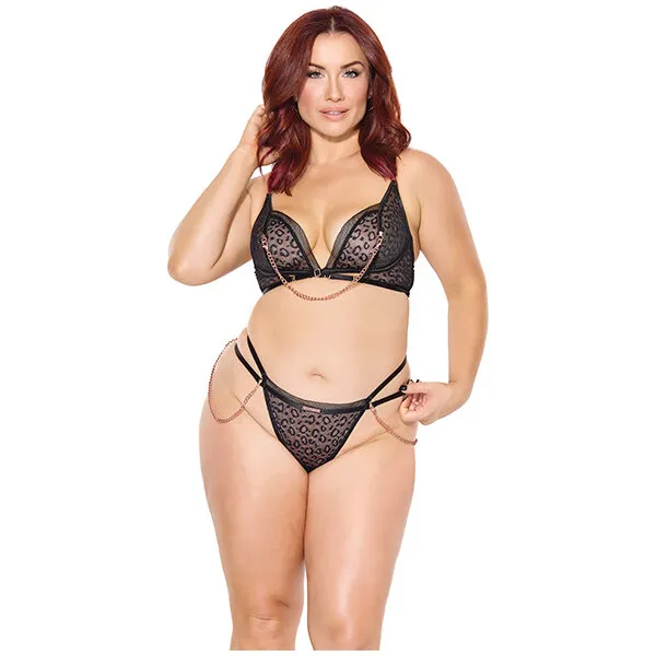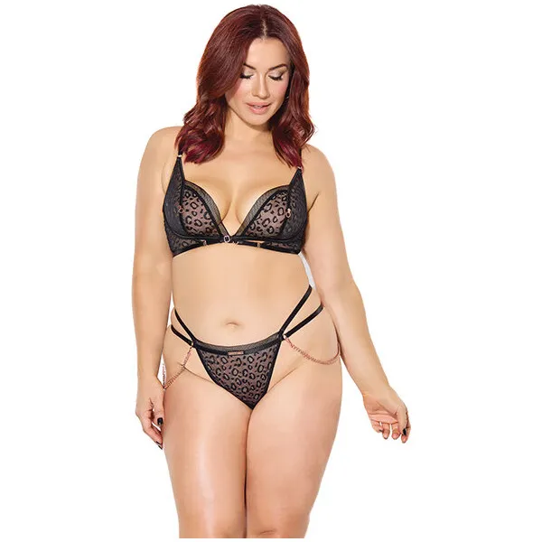 Sapphire Dreams Feather Lace Bralette w/Thong 2 pc Set . From Escante. S/M. Size: 2-6. Cup: A/B. Bust: 32in.-34in. Waist: 24in.-26in. Hip: 34in.-36in. Weight: 90-130lbs.