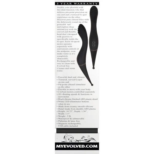 Two unique sensations connect with a flexible cord in this extraordinary toy that delivers delicious pleasure in two exquisite ways! A textured, vibrating, thrusting bullet on one end ramps up to 10 speeds for a surprising...