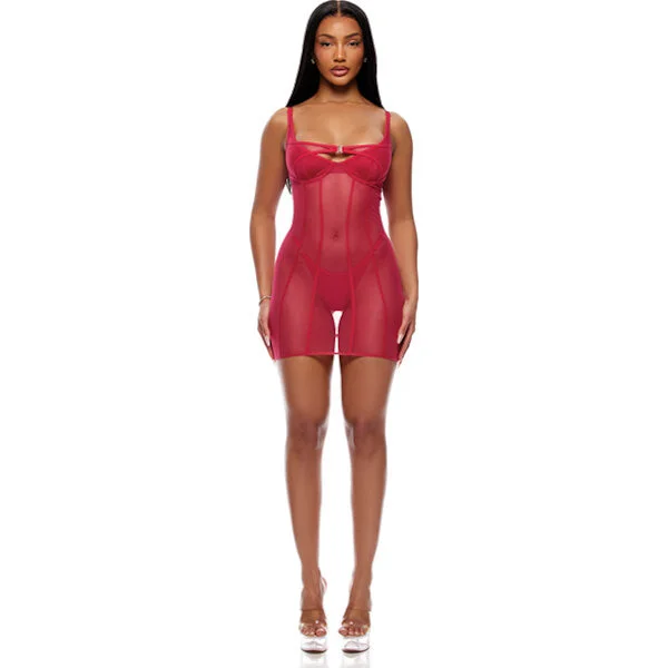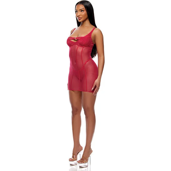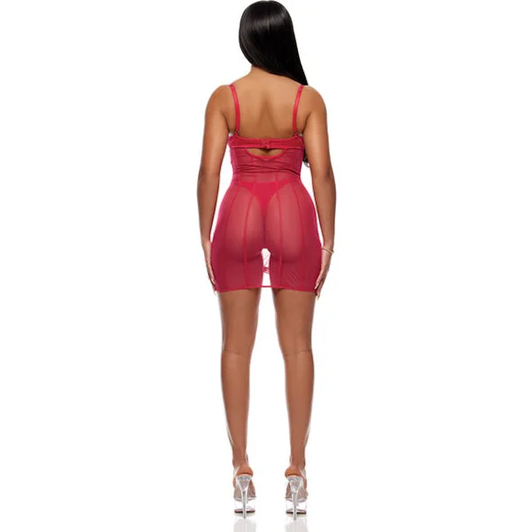 Layers To This Sheer Mesh and Knit Chemise w/Thong 2 pc Set - Pink MD
