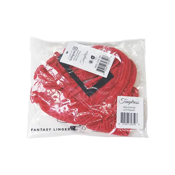 Collared lace-up bustier top with attached garters. Matching panty. Medic hat.(Stockings not included) Materials:Microfiber: 80% Nylon, 20% Spandex. Mesh: 87% Nylon, 13% Spandex. Washing Instructions:Hand wash separately in cold...