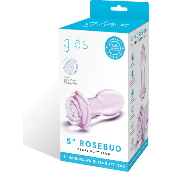 Glas 5" Rosebud Glass Butt Plug - Pink