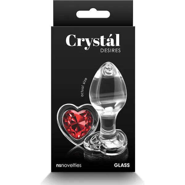 Crystal Desires -- Hearts are red and plugs are fun. Our borosilicate glass plugs are adorned with red hearts for a passionate encounter and exciting stimulation.