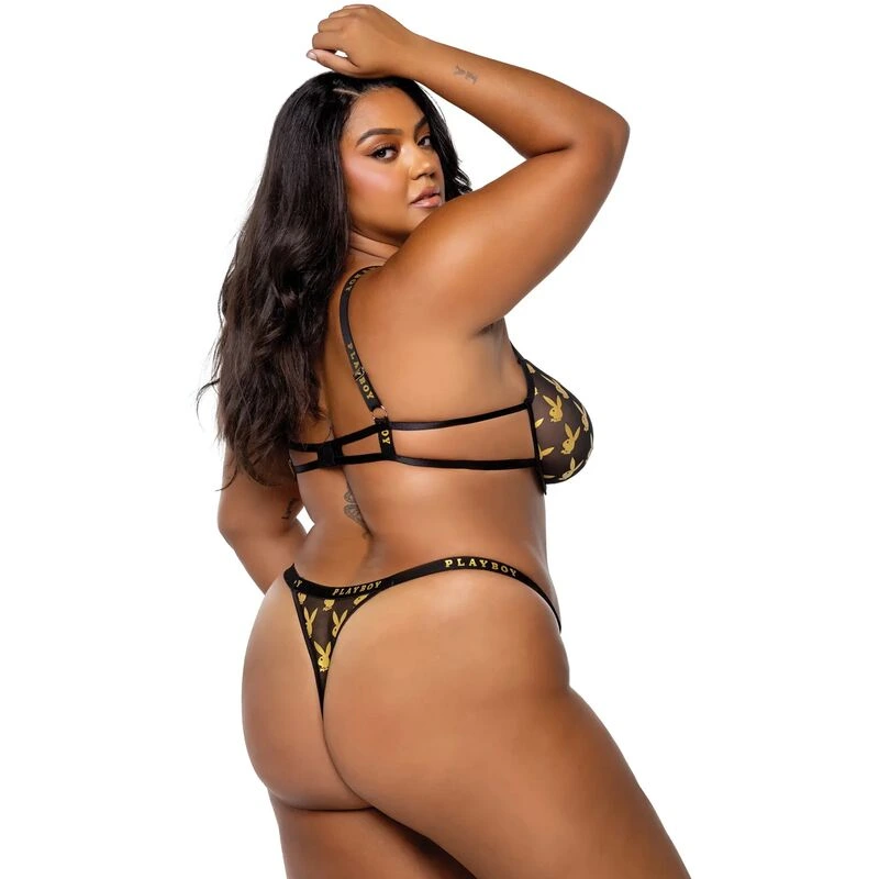 Stretch Lace & Mesh Thong Panty. ; From Shirley of Hollywood. ; XLarge. Bust: 40in.-43in. Waist: 31in.-34in. Hips: 41in.-44in. Dress Size: 16-18.
