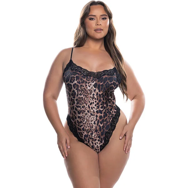 Sleek & Sexy Stretch Faux Leather & Stretch Lace Teddy Black MD