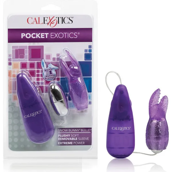 The Pocket Exotics Snow Bunny Bullet is a high-intensity vibrating bullet with removable, dual-action bunny teaser. Features a multi-speed power pack. Made from TPE (bunny) PP (controller) ABS with Silver Plating (bullet)....