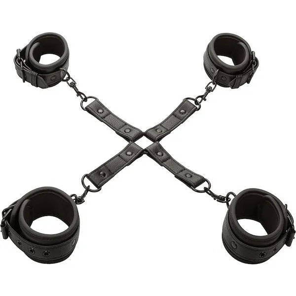 Cross shaped design. Features large metal ring. Rivet details. Reusable self adhesive backing.Black/Silver. PU Leather
