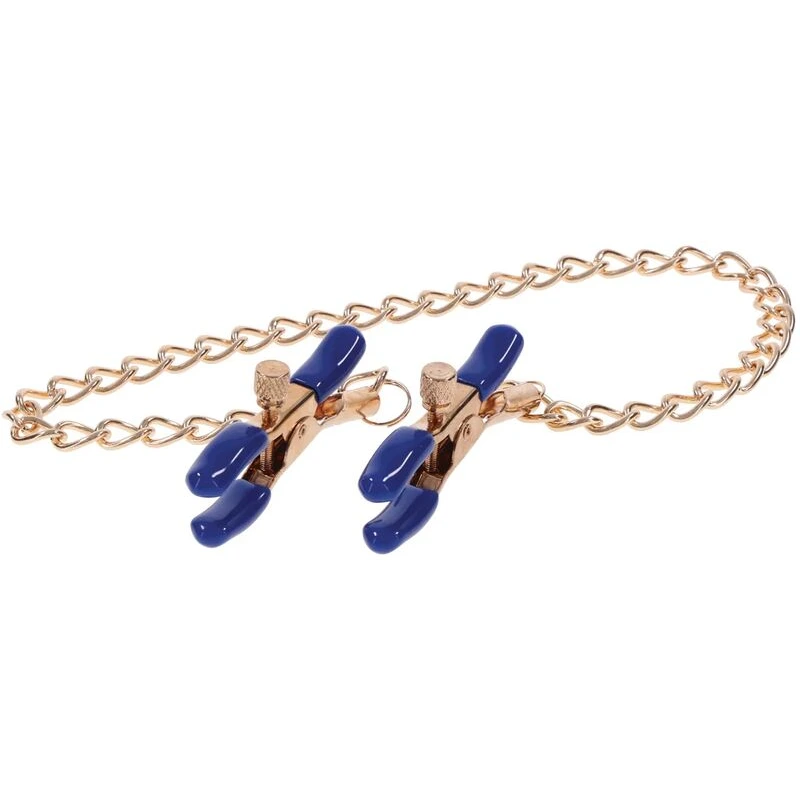 These exquisite clamps feature a gold chain and striking blue plastic tips, blending elegance with a touch of wild playfulness. Perfect for those new to BDSM or seasoned enthusiasts, the adjustable thumb-screws allow you to...