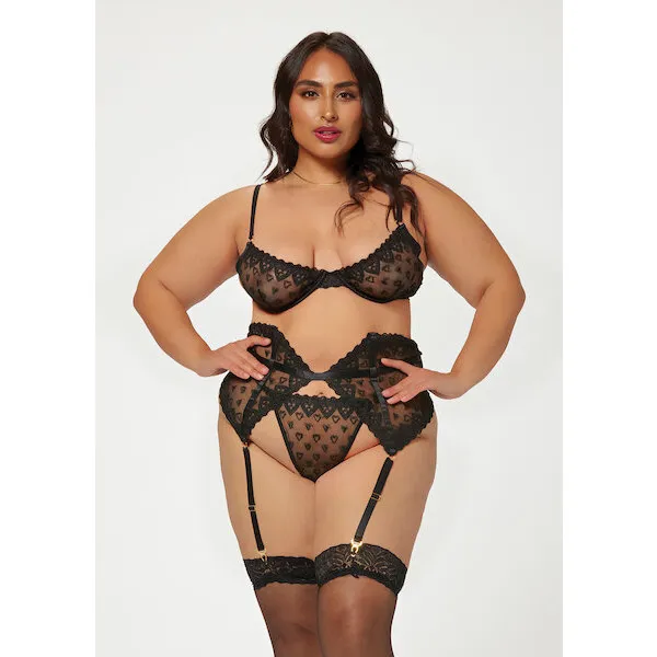 Floral Embroidered Teddy w/Underwire Cup & Garters Pink 1X/2X