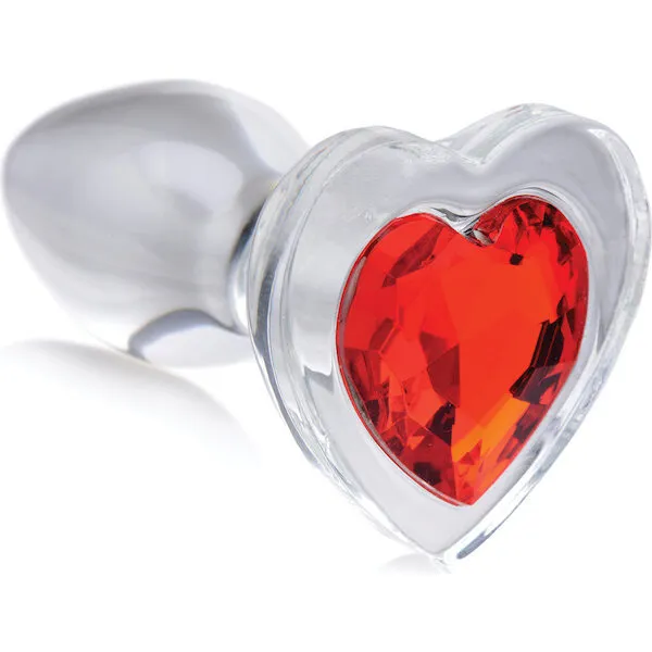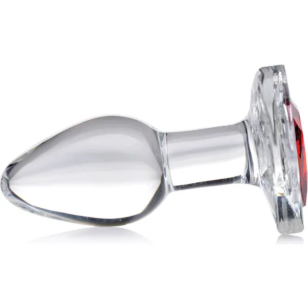 Crystal Desires Glass Heart Gem Butt Plug Medium - Red