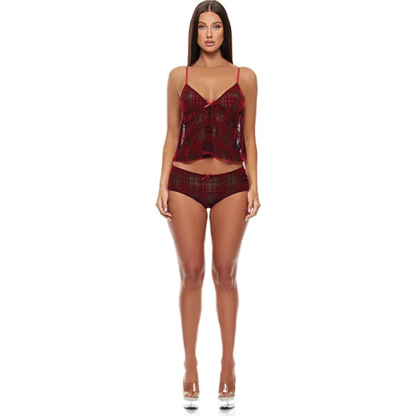 Velvet Lines Mesh Cami & Boy Short 2 pc Set - Red/Black MD