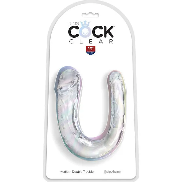 King Cock Clear Medium Double Trouble Dildo - Clear