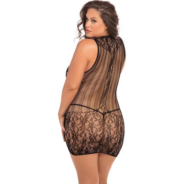 Rene Rofe Reckless Lace Mini Dress.; Queen size. Bust: 39in.-48in. Waist: 31in.-40in. Hip: 41in.-50in. Cup: D/DD. Dress: 16-24.