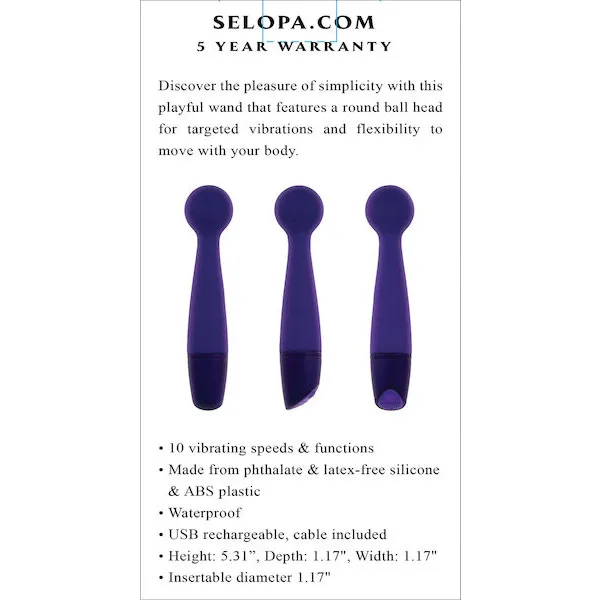 Discover the pleasure of simplicity with this playful wand that features a round ball head for targeted vibrations and flexibility to move with your body. Five Year Warranty.