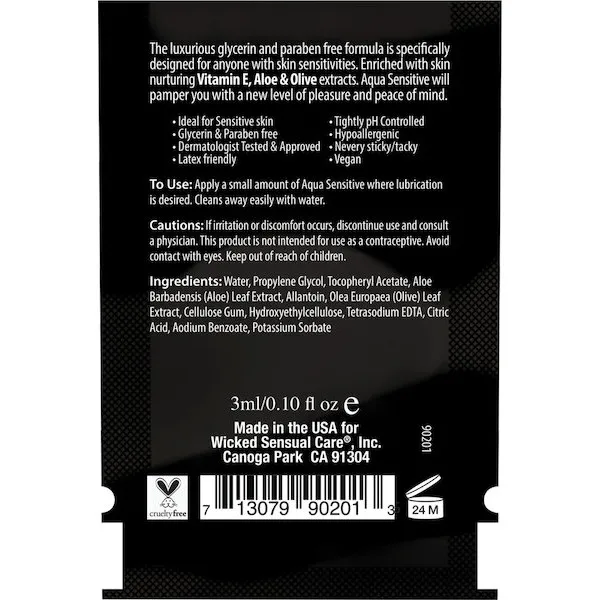 Wicked Sensual Care Hypoallergenic Aqua Sensitive Water Based Lubricant - .1 oz